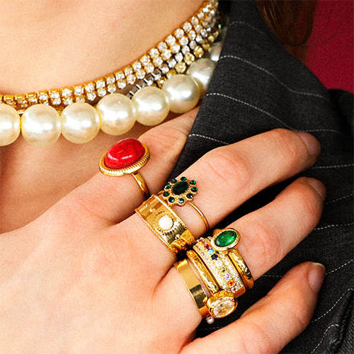 • Métal TQ laiton bague zirconium Doré-multicolore