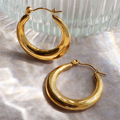 • Boucles d'oreilles en acier Inox créoles 22mm Doré