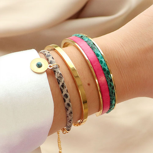 Créez des bracelets tendance en collant le cordon plat dans un bracelet jonc désigné et portez-le avec des bracelets jonc prêts à l’emploi que vous trouverez dans la collection. Le cordon et le simili cuir conviennent aussi parfaitement à la création de anses pour sac. Terminez les cordons avec des embouts et un fermoir et vos anses sont prêtes ! N’oubliez pas d’ajouter des porte-clés pratiques à votre collection.