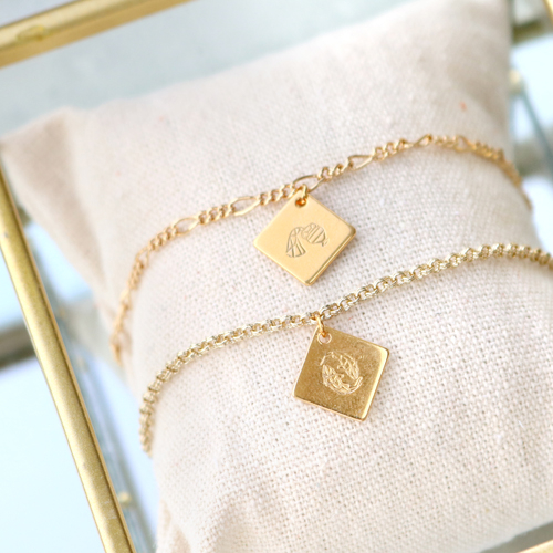 On adore fabriquer ses propres bijoux. Mais c’est encore plus amusant si on peut y ajouter une touche personnelle. Les tampons poinçon ImpressArt constellation sont idéals pour cela. Ainsi, à l’aide du marteau, du support et des tampons poinçon ImpressArt, vous pouvez poinçonner des motifs dans divers matériaux. Nous avons confectionné une paire de colliers très tendance en poinçonnant un signe du zodiaque dans la breloque. Vous pouvez également poinçonner des signes constellation dans les médaillons à graver ImpressArt, les médaillons en métal DQ, les bracelets Cuoio et dans notre cuir DQ. Maintenant, c’est à vous de jouer, bonne chance !