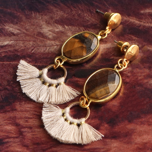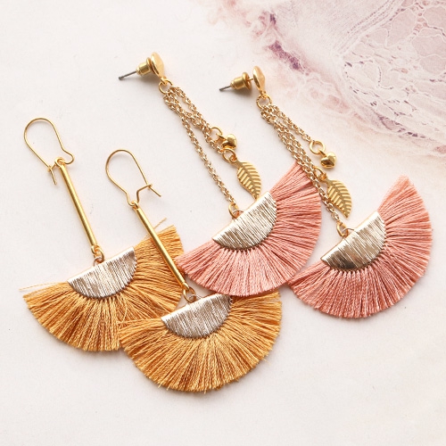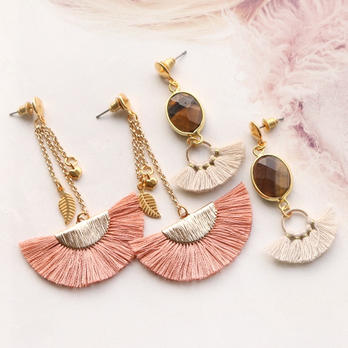 Besoin d’inspiration pour faire des boucles d’oreilles tendance ? Découvrez vite nos nouvelles créations ! Nous avons fabriqué des boucles d’oreilles à franges avec des pompons colorés, du métal DQ et des connecteurs en pierres semi-précieuses. Quelle est votre paire de boucles d’oreilles préférée ?