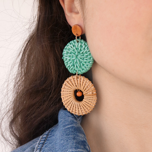 Boucles d’oreilles festives avec pendentifs en rotin !