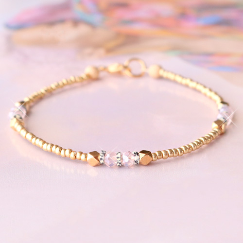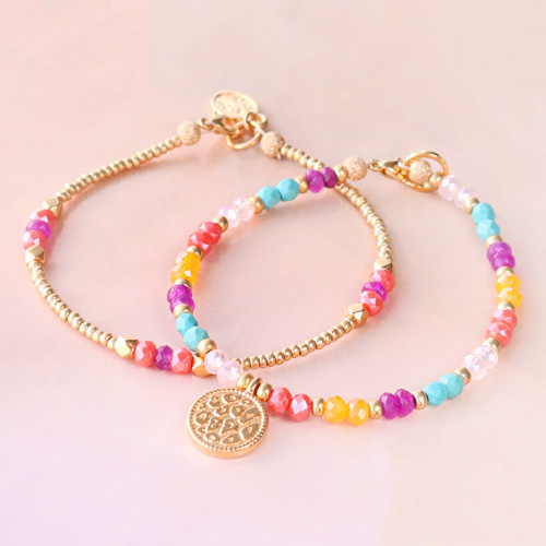 Découvrez ces magnifiques bracelets avec des perles à facettes. Les perles colorées donnent un effet brillant à ces bracelets avec des perles en verre et du verre Crystal Glass. Nous avons également utilisé du métal DQ pour la finition des bijoux, ce qui donne immédiatement un look chic et élégant. Pour faire ces bracelets, nous avons utilisé de la chaîne maille jaseron, du fil métallique et du fil macramé mais vous pouvez également utiliser d’autre type de fils et cordons.