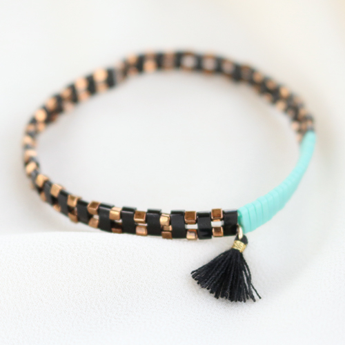 Que pensez-vous de ces bracelets et boucles d'oreilles ? Pour créer un look chic et intemporel, nous avons utilisé des perles Miyuki de haute qualité avec une brillance irrésistible. Pour faire ces bracelets et ces boucles d'oreilles, nous avons utilisé du fil élastique, du fil métallique ainsi que des apprêts en métal DQ. Avec les nouvelles perles Miyuki bugles, nous avons créé des boucles d'oreilles a pompons, qui donnent un effet super chic !