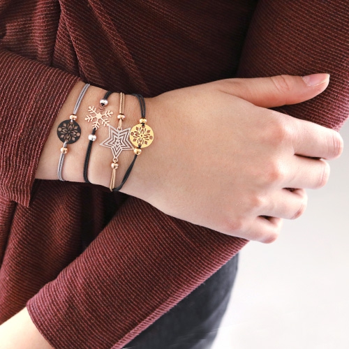 Combinez ces pendentifs bohèmes avec plusieurs bijoux ! Nous avons choisi d’en faire des bracelets et une porte-clé ! Pour ce dernier, nous avons collé plusieurs brins de fil macramé dans un embout. Ensuite, nous avons fixé les pendentifs à l’extrémité des brins. Pour les bracelets nous avons utilisé du fil élastique coloré et des perles en métal DQ. Ces bracelets minimalistes font partie des bijoux intemporels qui subliment à coup sûr votre tenue.