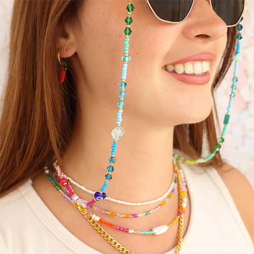 Vous pouvez utiliser cette nouvelle gamme de perles à facettes toupies et tubes dans tous vos bijoux. Combinez les perles à facettes avec des perles de verre, des perles d'eau douce et des perles de polymère pour créer des colliers que vous pourrez combiner ou un cordon de lunettes de soleil très tendance !