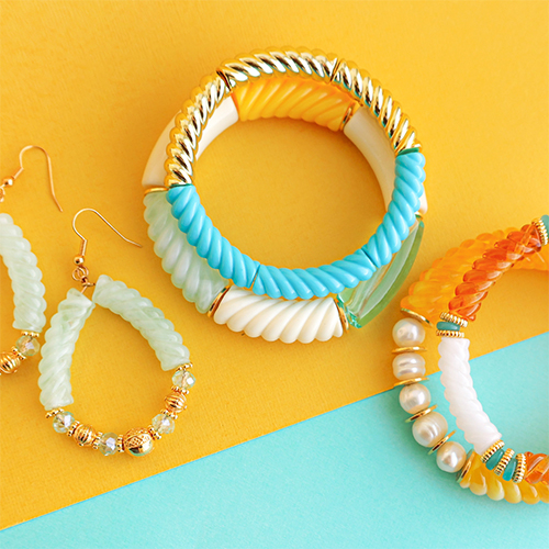 • Perles tubes acryliques torsadé Jaune spectra transparent
