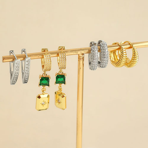 • Métal TQ laiton boucles d'oreilles zirconium Doré
