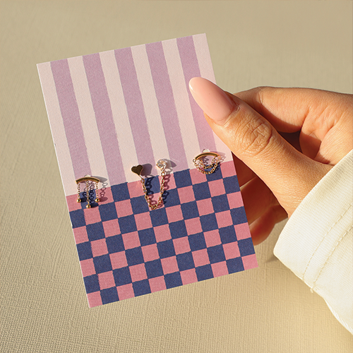 BY31® Cartes à bijoux lignes & cubes Violet-rose-bleu foncé