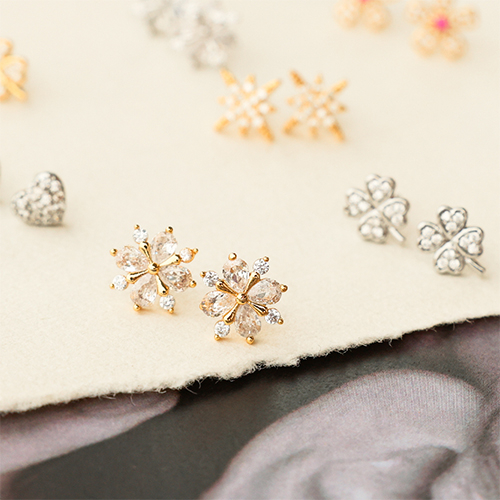 • Métal TQ laiton boucles d'oreilles / puces d’oreilles zirconium fleur Argenté