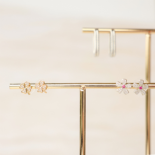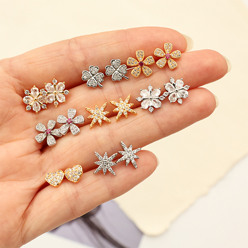 Cette nouvelle collection de boucles d'oreilles en laiton TQ ajoutera une touche élégante à votre tenue! Choisissez parmi des clous d'oreilles en forme de cœur, étoile, trèfle ou fleur avec zirconium scintillants, ou optez pour des boucles ovales tendance. Un incontournable pour chaque amateur de bijoux!