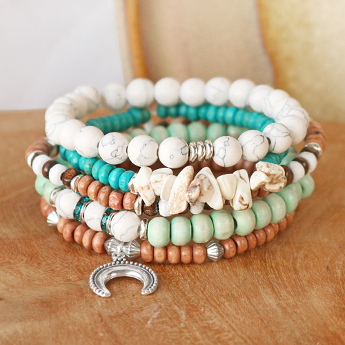 Vous recherchez l’inspiration concernant les perles en bois ? Alors vous êtes au bon endroit ! Nous nous sommes mis au travail et avons confectionné de superbes bracelets pour hommes et femmes avec des perles en bois. Lorsque vous créez des bracelets pour hommes, vous pouvez utiliser différentes perles en bois de couleur sombre. Composez un bracelet avec diverses perles en bois, des perles en métal DQ et du fil élastique. D’autre part, vous pouvez créer un bracelet féminin tendance en enfilant des perles en bois sur un cordon en coton ciré, pour ensuite en faire une fleur. Conseil : appliquez de la colle sur les extrémités du cordon, pour pouvoir enfiler plus facilement les perles. Pour un look encore plus estival, vous pouvez également ajouter des coquillages Cauris au bracelet. Concevez différents bracelets en combinant les perles en bois avec des perles en pierre naturelle, des perles chips et des breloques en métal DQ. Lancez-vous et créez de magnifiques bijoux à l’aspect naturel !
