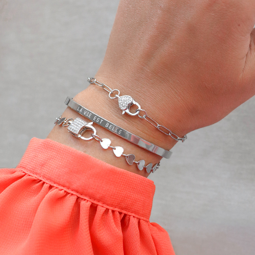 • Bracelets en acier inox "LA VIE EST BELLE" Argenté