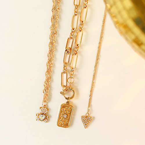 Breloques en acier Inox coeur avec strass Doré-transparent