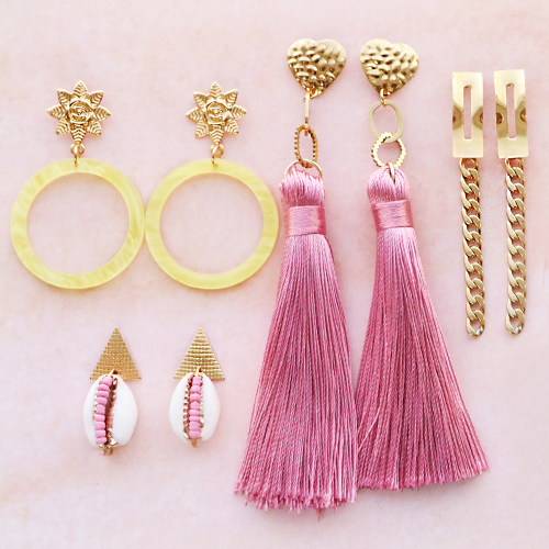 Boucles d'oreilles en acier Inox/puces d’oreilles fleur avec anneau Doré