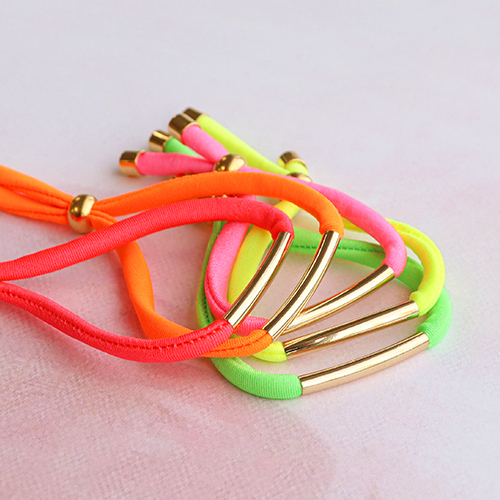 A l’aide de cette collection de ruban élastique Ibiza, vous créez en peu de temps une collection de bracelets colorés. Servez-vous de perles en métal DQ pour fermer les bracelets et d’embouts pour une belle finition. Attachez ensuite votre breloque préférée au bracelet accompagnée d’un mini pompon dans une couleur flash. Combinez ces bracelets avec des bracelets faits de rocailles Preciosa colorées.