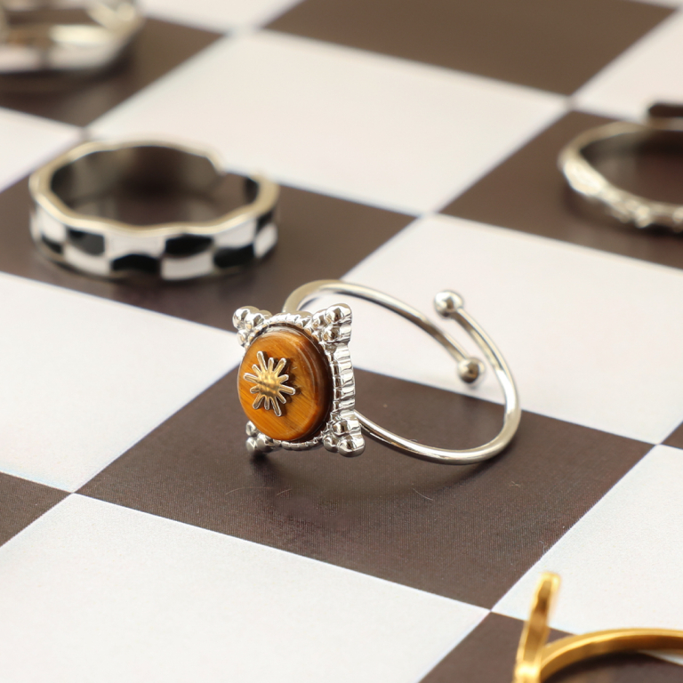 Actualisez votre collection de bijoux avec nos nouvelles bagues en acier inoxydable! Disponibles en argenté, doré et parfois avec une touche de couleur, ces bagues attirent tous les regards. Des fleurs aux serpents, en passant par les soleils et les cœurs, elles sont à la fois élégantes et résistantes à l'eau !