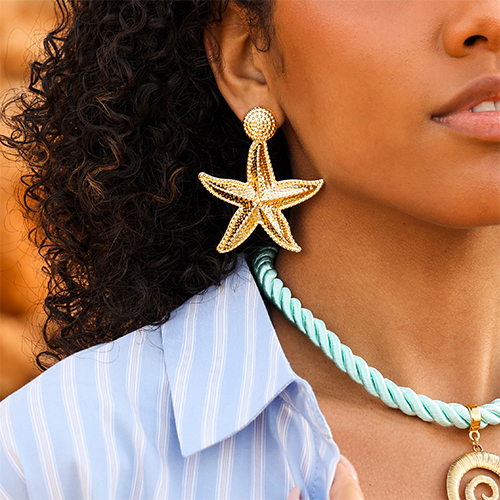 • Boucles d'oreilles accroche-regard étoile de mer Doré