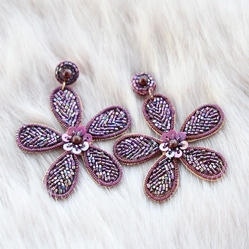 • Boucles d'oreilles tendance avec perles en verre fleur Aubergine