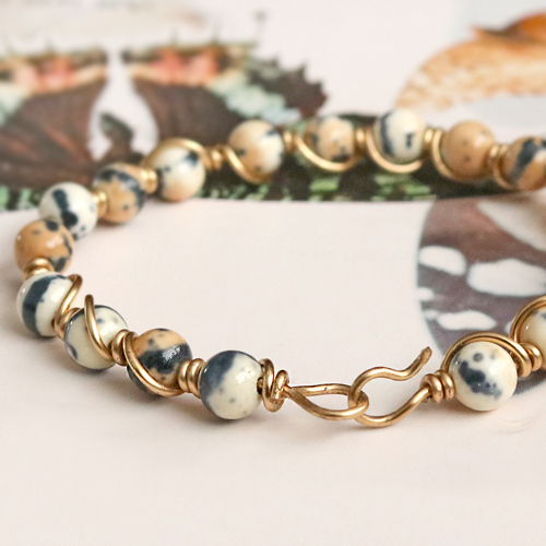 Ces bijoux exclusifs sont confectionnés avec des perles en pierre naturelle jade et de l’Artistic Wire :