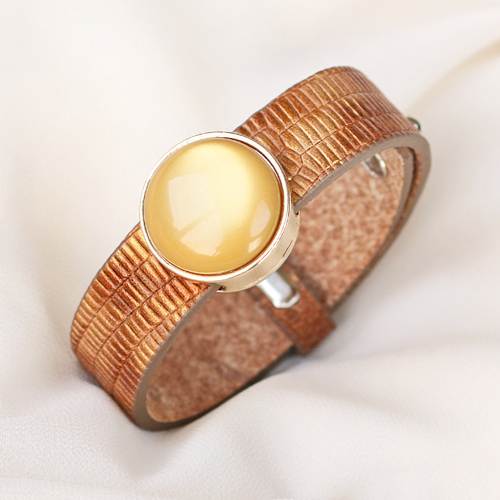Des imprimés animaux et des couleurs naturelles, ce sont les tendances actuelles ! La nouvelle collection de bracelets Cuoio s'y prête parfaitement ! Dans cette nouvelle collection vous trouverez des bracelets à imprimé crocodile avec des détails métalliques subtils. Ces magnifique bracelets sauront certainement attirer l'attention avec leur look unique! Combinez les bracelets Cuoio avec nos cabochons Polaris Elements. Collez le cabochon sur un serti en métal, laissez-le sécher et glissez le poussoir avec serti sur le bracelet Cuoio. Mix et match vos articles favoris et créez une infinité de combinaisons différentes adaptées à chaque style.