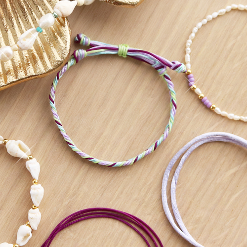 Que vous puissiez créer de superbes combinaisons avec du fil macramé, des perles d’eau douce et des perles coquillage n’est certes pas un secret. Mais par où commencer ? Pour confectionner un bracelet super cool, vous pouvez par exemple utiliser différentes couleurs de fil macramé que vous allez nouer ou tresser. Faites un nœud coulissant en guise de fermoir et votre bracelet d’été est fin prêt ! Vous souhaitez encore y ajouter un petit quelque chose ? Enfilez alors des rocailles ou des perles d’eau douce sur le fil macramé et fixez la pièce centrale en faisant un nœud à côté de la dernière perle ou aplatissez une perle à écraser. De cette manière, tout restera bien en place. Vous pouvez également utiliser des perles d’eau douce et des perles coquillage pour confectionner un cordon de lunettes de soleil. Enfilez ces perles en combinaison avec des rocailles et des perles en métal DQ sur du fil métallique et terminez avec une attache cordon de lunettes à chaque extrémité.