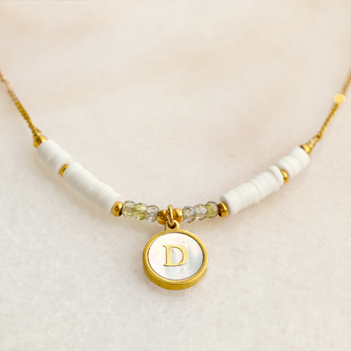 Breloques en acier Inox nacre rond 12mm lettre D Blanc (couleur naturelle)-doré