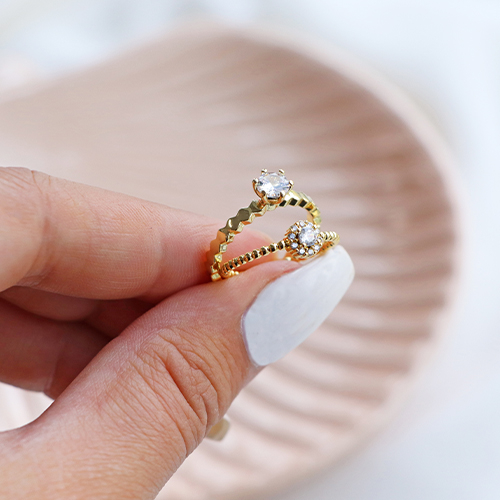 Ces bagues émaillées en laiton doré et argenté sont super fun à porter avec des bagues faites maison. Concevez votre propre bague en combinant par exemple des perles de rocailles, des perles à facettes et des perles en métal DQ. Enfilez-les sur un fil de nylon ou élastique et terminez la bague par un nœud et une goutte de colle. Utilisez un tapis pour perles lorsque vous travaillez avec des petites perles.