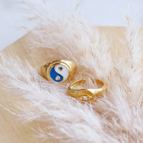 Bagues émaillée oeil porte-bonheur Multicolore-doré