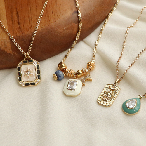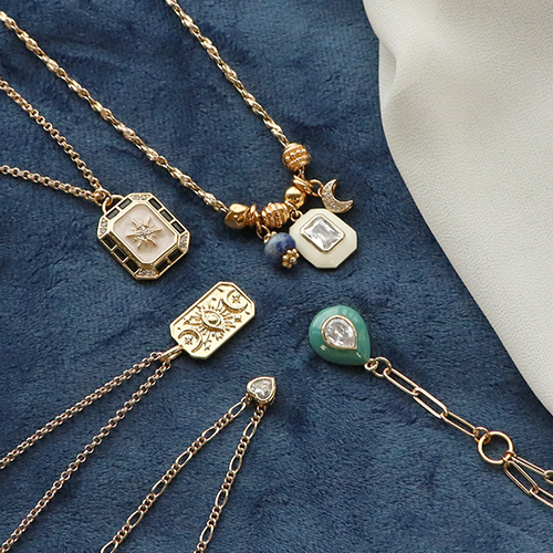 Ces breloques et perles en laiton et zirconium sont parfaites pour réaliser une collection de colliers stacking. C’est à la mode de porter plusieurs colliers à la même longueur en même temps. Réalisez des colliers en différentes sortes de chaînes maille jaseron pour fixer des breloques. Portez plusieurs colliers en même temps et utilisez différentes sortes de perles telles des perles Katsuki, des perles à facettes, des perles en pierre naturelle et des perles Polaris disc.