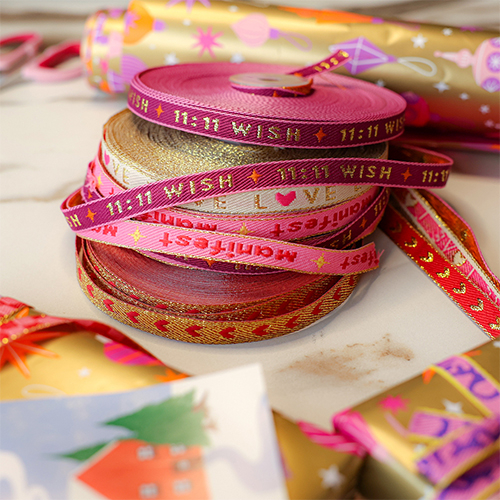 Le mois des fêtes a déjà commencé, et quoi de plus amusant que de rendre vos cadeaux encore plus spéciaux ? Laissez-vous inspirer et découvrez ce que vous pouvez faire avec du ruban à texte. Que vous optiez pour des paillettes, une belle impression ou un texte ludique, nous en avons pour tous les goûts ! Faites preuve de créativité et utilisez nos rubans pour fabriquer des bijoux de fête et des accessoires pour les cheveux. Vous pourrez ainsi ajouter une touche unique et personnelle à vos créations !