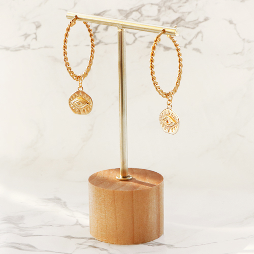 Présentoir bijoux en forme de T avec pied en bois pour boucles d'oreilles (3 pcs) Naturel (couleur naturelle du bois)-doré