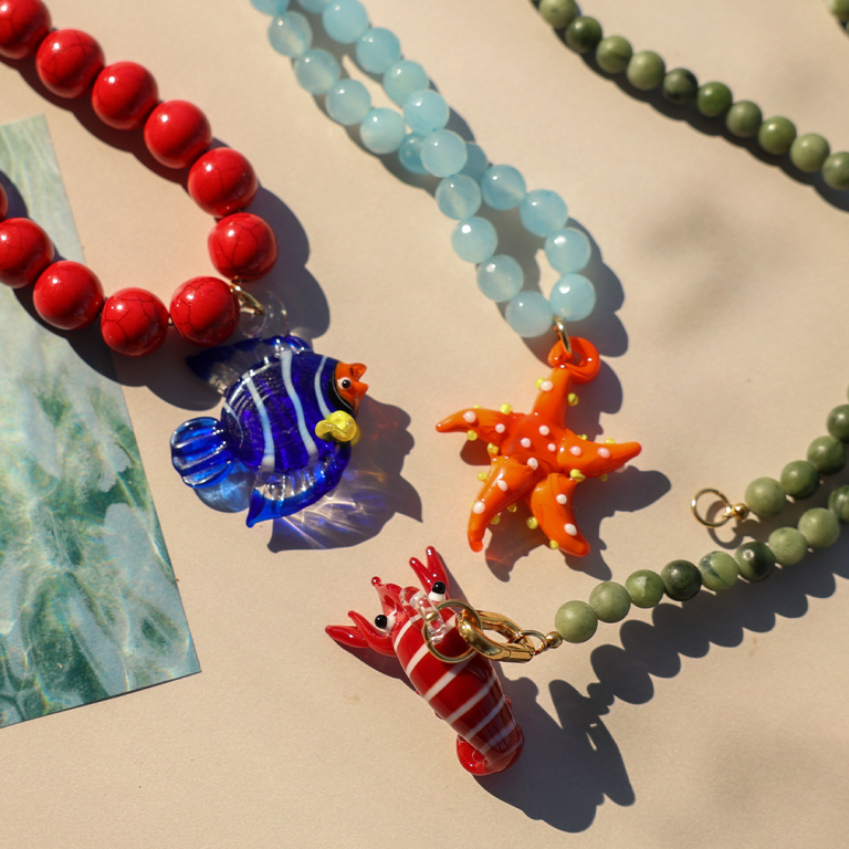 Vous recherchez une vraie tendance pour cette saison ? Les bijoux inspirés de la mer s’imposent fortement en ce moment et se retrouvent partout sur les podiums ainsi que dans les collections de grandes maisons comme Versace, Chanel et Schiaparelli. Versace a présenté des détails audacieux en forme d’étoiles de mer et de coquillages, Chanel a misé sur les perles classiques et les motifs coquillages, tandis que Schiaparelli a fait défiler des créatures marines surréalistes en or, comme des homards et des coquillages. Avec les articles Sealife de notre collection, vous intégrez facilement cette tendance à votre propre assortiment. Pensez à des colliers tendance avec des breloques et pendentifs originaux, allant de grands coquillages, tortues, crabes et étoiles de mer à toutes sortes de poissons (colorés). Utilisez ces éléments accrocheurs dans des colliers imposants, mais aussi pour des bracelets colorés, des bijoux de sac originaux et des boucles d’oreilles. Nous proposons également des porte-clés prêts à l’emploi et des porte-monnaie en cuir véritable dans des formes marines uniques. Des articles indispensables dans votre collection.