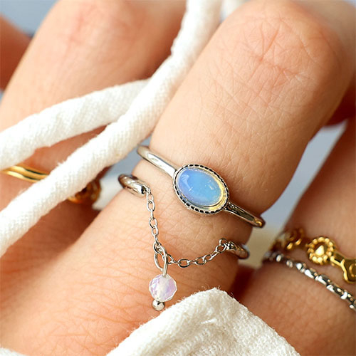 Bagues en acier Inox perles Argenté