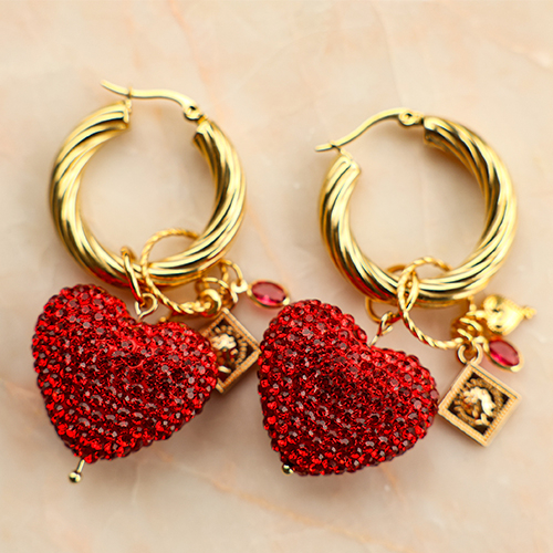 • Perles en verre peintes à la main fraise Rouge-blanc