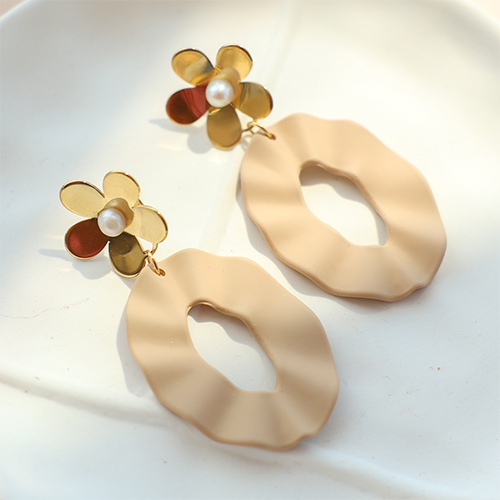 Boucles d'oreilles / puces en acier Inox perles fleur avec anneau Doré