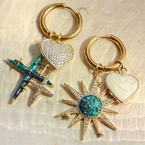 • Métal TQ laiton breloques zirconium ètoile Doré-vert aqua foncé-bleu