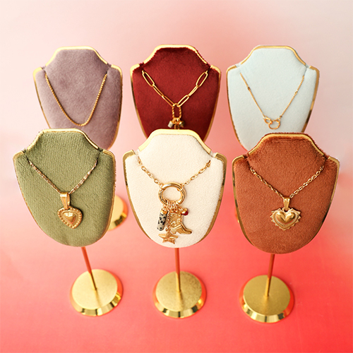 Les nouveaux présentoirs sont beaux, chics et parfaits pour mettre en valeur votre collection de bijoux. Ils sont disponibles en formes comme buste, oreille, fleur et cœur, et dans des couleurs magnifiques comme le blanc, le vert, le bleu ou encore le bordeaux. Offrez à vos bijoux la présentation qu'ils méritent avec ces élégants présentoirs !