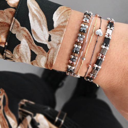 Réaliser des bijoux grâce à nos perles hématites : c’est vraiment facile. Tout devient possible grâce aux perles hématites, mais nous avons choisi de réaliser des bijoux minimalistes avec elles. Nous avons combiné les perles hématites à du fil macramé pour un éclat sans pareil. Vous pouvez également réaliser de magnifiques bracelets grâce à nos perles Miyuki Tila. Vous réaliserez de magnifiques boucles d’oreilles grâce à nos apprêts pour boucles d’oreilles et en combinant les perles hématites aux perles à facettes. Amusez-vous !