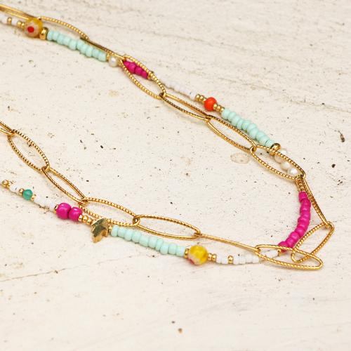Cet été, nous croiserons de nombreux styles différents, dont le « botanical style ». Ce style comprend des bijoux délicats tels que des colliers, des bracelets et des bagues minimalistes. Les perles d’eau douce, les pierres naturelles et les perles de rocailles en verre sont de magnifiques éléments qui s’accordent parfaitement avec le style botanique. Cette tendance reprend également de nombreuses figures florales, comme les perles multicolores Millefiori. Avec les perles de rocailles en verre, vous pouvez concevoir de superbes articles floraux. Créez de magnifiques bijoux avec un fin jaseron et des breloques en acier inox. Pour apporter la touche finale à votre bijou, vous pouvez personnaliser les perles et les décorer avec des éléments en laiton et zirconium. Sortez cette robe colorée de votre garde-robe et combinez-la avec les magnifiques bijoux botaniques pour un look estival élégant et radieux !