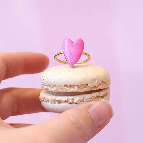 • Bagues en acier inox émaillées coeur Rouge nacré-Doré