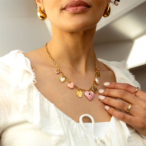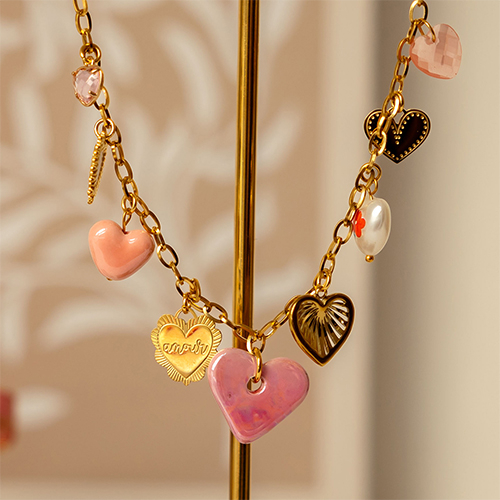 Pendentifs en verre Crystal Glass cœur Rose clair-doré
