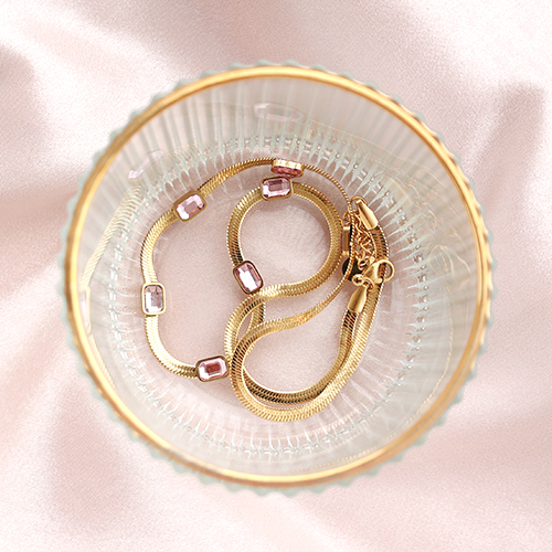 Bracelets en acier inox chaîne maille serpentine cristal Doré-rosa